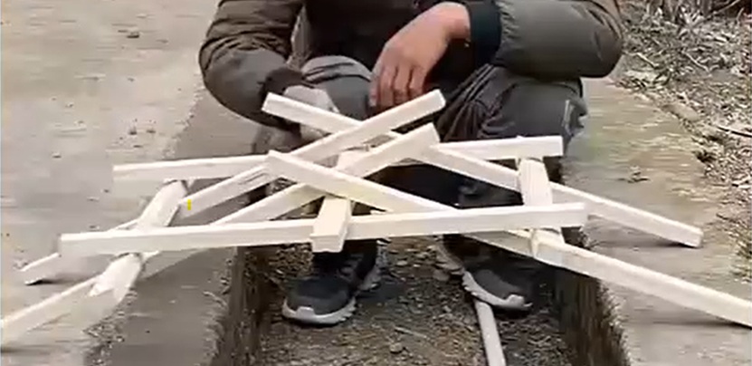 then study the structure of 9 bars bridge from this picture, using reverse engineering skill and 9 pieces of sticks build the similar bridge