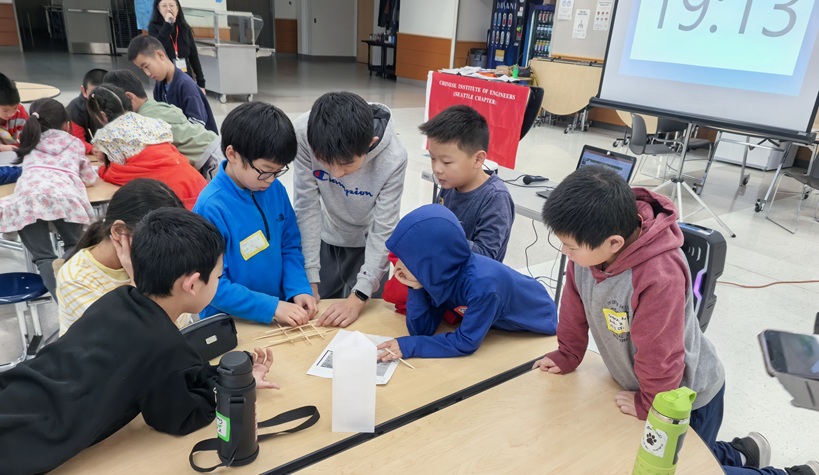 This year’s science competition challenged students to replicate a traditional Chinese wooden arch bridge. These bridges, found primarily in Zhejiang and Fujian provinces, are UNESCO World Heritage sites known for their unique construction—built entirely without single nail. Students were tasked with recreating this engineering marvel using wooden popsicle sticks to develop their reverse-engineering skills. Their goal was to build a self-supporting arch using nine wooden sticks. The room buzzed with activity as groups collaborated, tested, and redesigned their structures, learning firsthand about structural integrity and engineering balance.