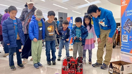 Alongside the competition, three FTC robotics teams — Sushi Squad 14179, Quality Control 21229, and Robot Eclipse 11138 — were present to introduce students to robotics and encourage them to try driving a robot. Students’ eyes lit up as they took the controls of the teams’ advanced, competition-ready robots, navigating them through a small obstacle course. Teams shared their own experiences in robotics, inspiring the next generation of engineers and programmers.